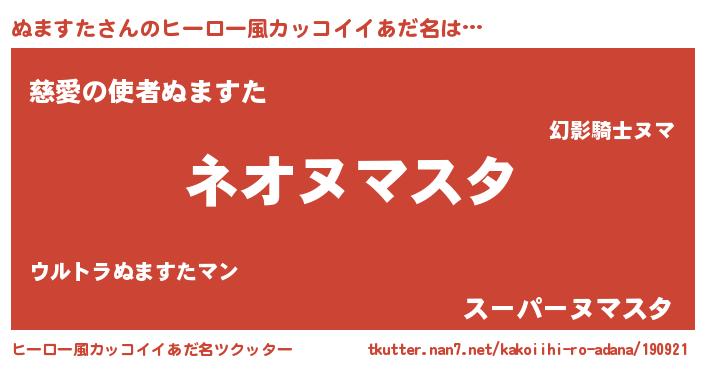 | 胡散臭い通販商品みたいなあだ名 | 『絶対に幸福をもたらす招き猫…その名も「ぬますた」』 |