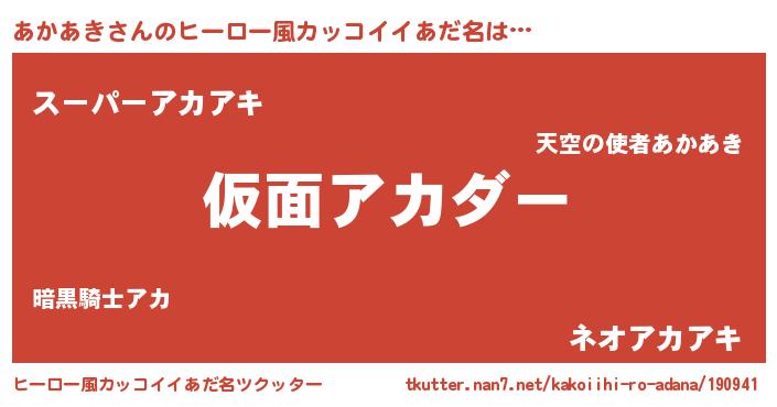 | 男性向けラノベタイトル風あだ名 | 『魔弾の王とあかあき』 |