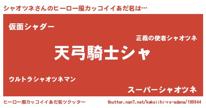 | ポケモン風あだ名 | 『ヒシャオツネ』『シーャイ』 |