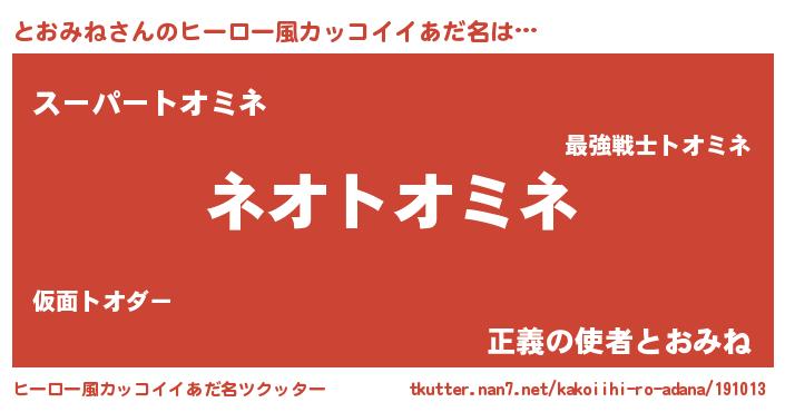 とおみねさんのヒーロー風カッコイイあだ名をツクッター!