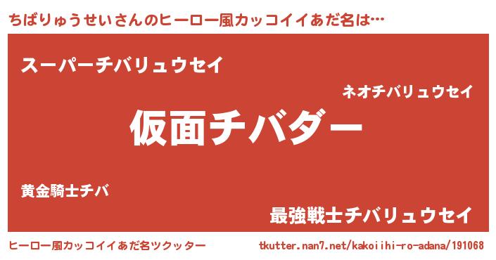 | 意味不明あだ名 | 『住所不定無職ちばりゅうせい(53歳)』 |