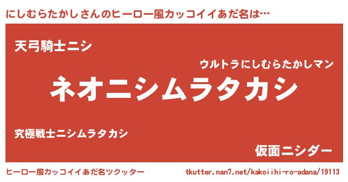 | ヘコむあだ名 | 『にしむらたかし(小並感)』『にしを』 |