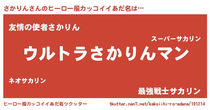 | 女子向けラノベタイトル風あだ名 | 『さかりんの雑貨屋さん』『闇のさかりん』 |