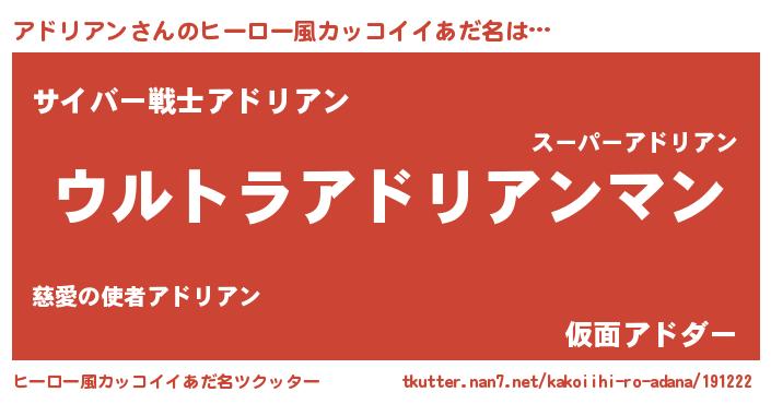 | 恥ずかしいあだ名 | 『アドっちょ』『アドリアンデラックス』 |