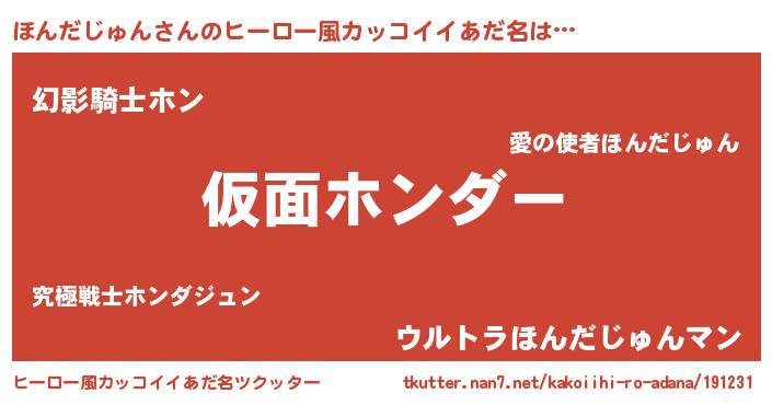 | 男性向けラノベタイトル風あだ名 | 『魔弾の王とほんだじゅん』 |