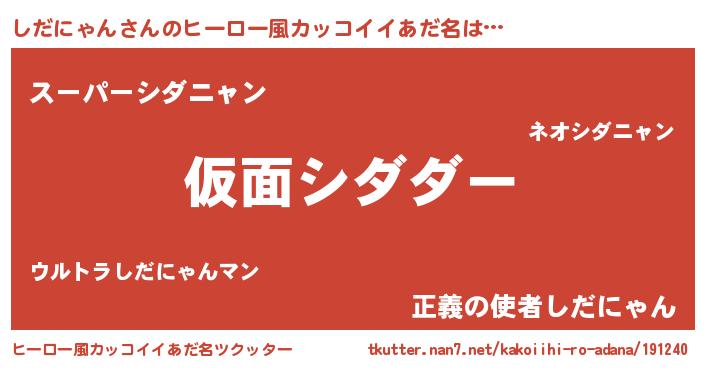 | 意味不明あだ名 | 『住所不定無職しだにゃん(3歳)』 |