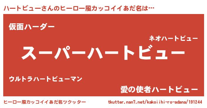 | 男性向けラノベタイトル風あだ名 | 『ハートビューアートオンライン』 |