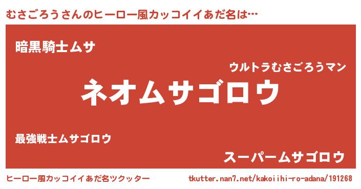 | 意味不明あだ名 | 『永久保存むさごろう』 |