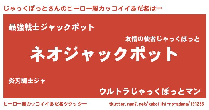 | 意味不明あだ名 | 『永久保存じゃっくぽっと』 |