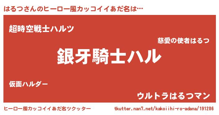| 女子向けラノベタイトル風あだ名 | 『はるつの卵を拾いまして』『闇のはるつ』 |