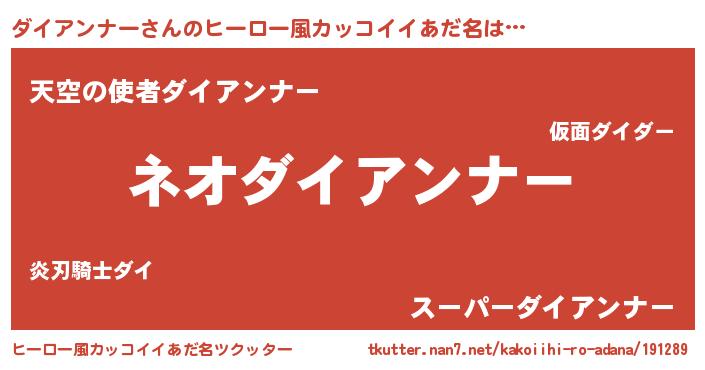 | 男性向けラノベタイトル風あだ名 | 『ダイアンナーに滅ぼされるだけの簡単なお仕事です』 |