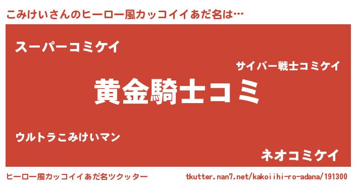 | 男性向けラノベタイトル風あだ名 | 『緋弾のコミケイ』『こみけいの憂鬱』 |