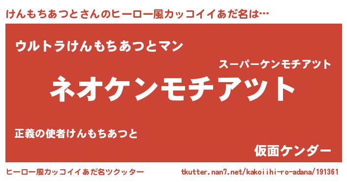 | 胡散臭い通販商品みたいなあだ名 | 『前代未聞の健康食品…その名も「けんもちあつと」』 |