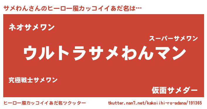 | ファンタジー風あだ名 | 『エターナルサメワンー』『サメフェル』 |