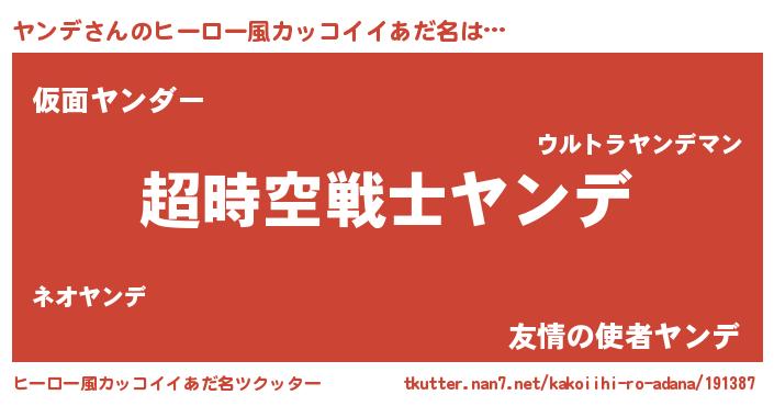 | 意味不明あだ名 | 『自称ヤンデ』『住所不定無職ヤンデ(93歳)』 |