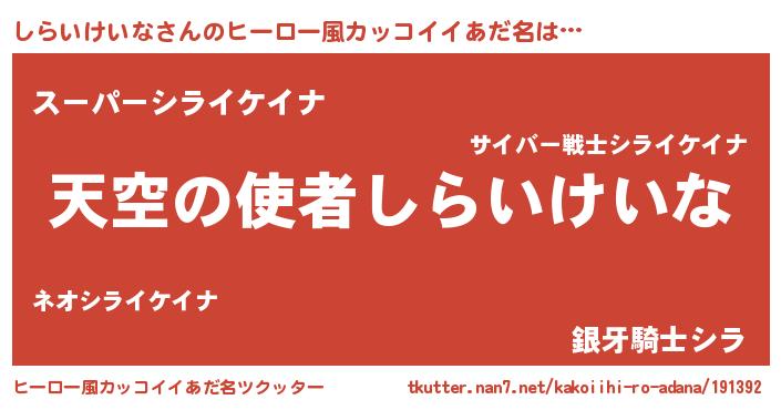 | 伝説のあだ名 | 『救世主となる占い師しらいけいな』 |