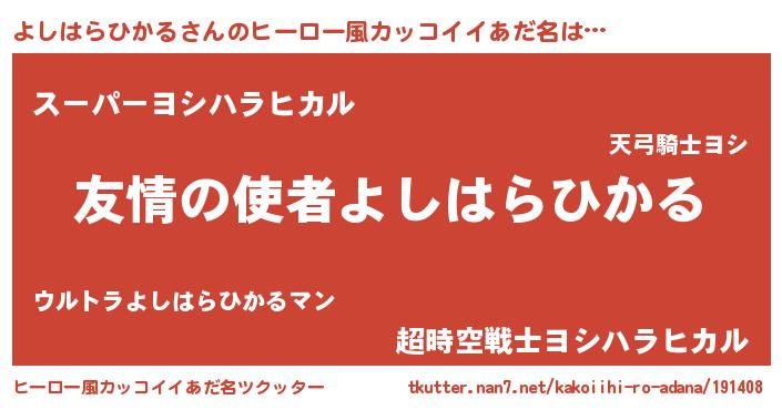 | 胡散臭い通販商品みたいなあだ名 | 『100人中100人が認めたイリジウム磁石…その名も「よしはらひかる」』 |