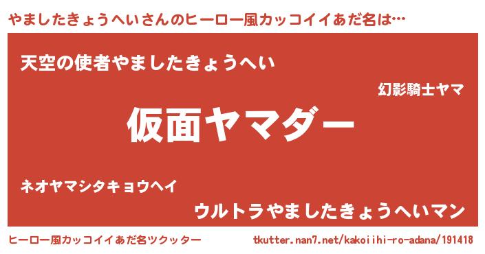 | 意味不明あだ名 | 『住所不定無職やましたきょうへい(62歳)』 |