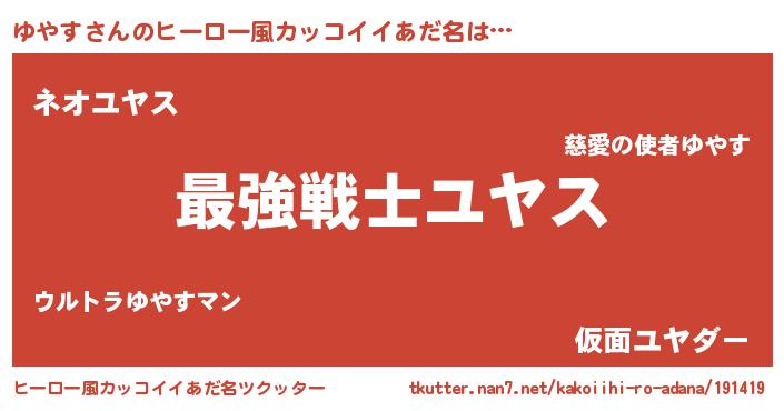 | 意味不明あだ名 | 『自称ゆやす』『永久保存ゆやす』 |