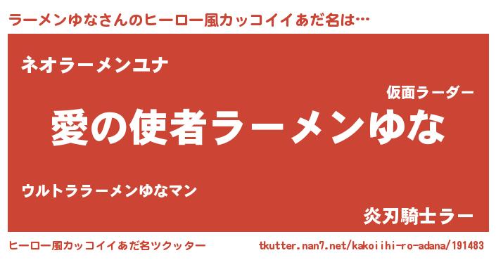 | 胡散臭い通販商品みたいなあだ名 | 『お金では代えられない隕石のかけら…その名も「ラーメンゆな」』 |
