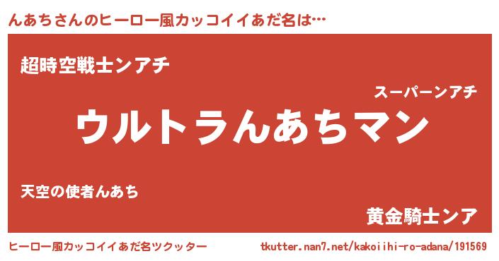 | 男性向けラノベタイトル風あだ名 | 『転生したらんあちだった件』 |