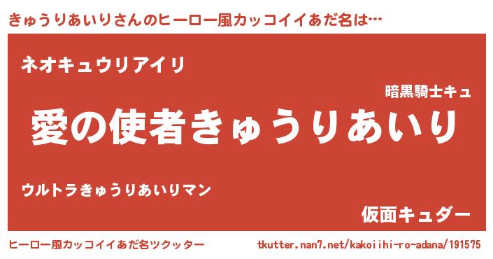 | 男性向けラノベタイトル風あだ名 | 『転生したらきゅうりあいりだった件』 |