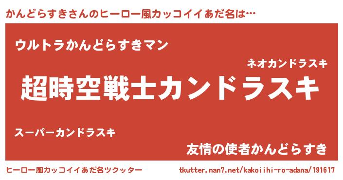 | 意味不明あだ名 | 『自称かんどらすき』 |