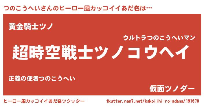 | 伝説のあだ名 | 『孤高の遊び人つのこうへい』 |