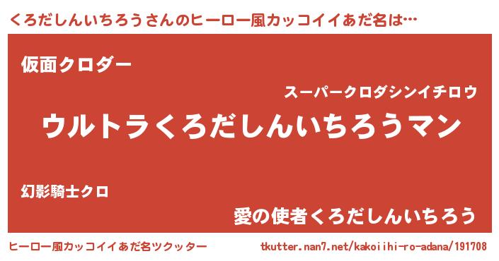 | ファンタジー風あだ名 | 『エターナルクロダシンイチロウー』 |