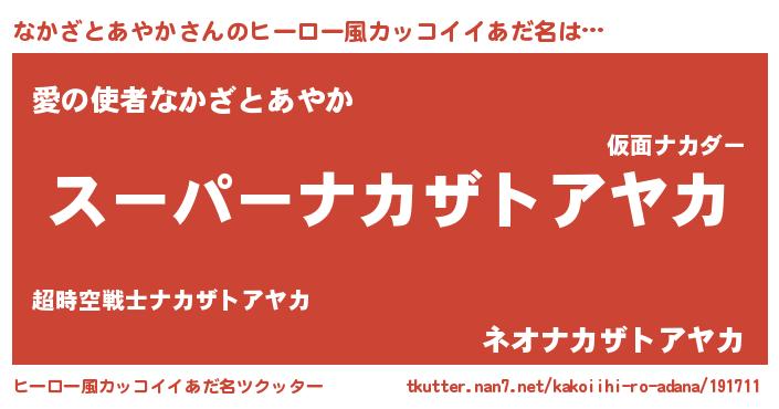 | 恥ずかしいあだ名 | 『プリティーなかざとあやか』『なかちん』 |