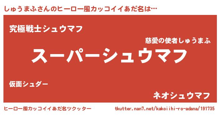 | 男性向けラノベタイトル風あだ名 | 『しゅうまふの憂鬱』 |