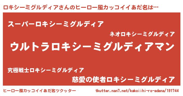 | ファンタジー風あだ名 | 『エターナルロキシーミグルディアー』 |