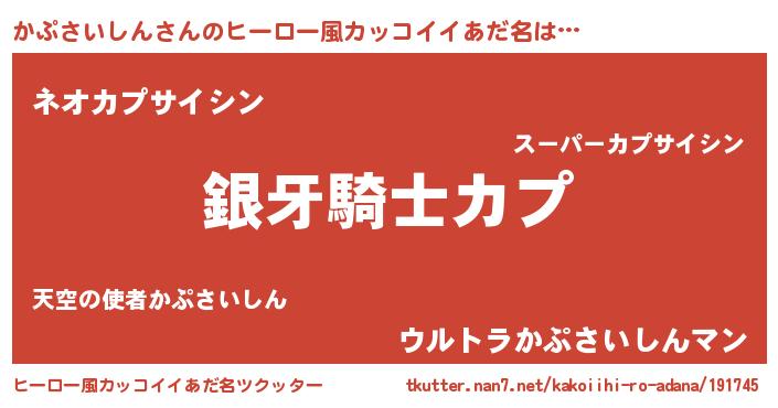 | 男性向けラノベタイトル風あだ名 | 『ダンジョンにかぷさいしんを求めるのは間違っているだろうか』 |