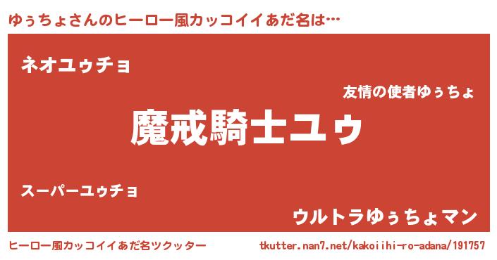 | 胡散臭い通販商品みたいなあだ名 | 『信頼と実績のサプリメント…その名も「ゆぅちょ」』 |