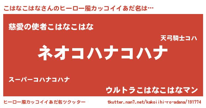 | 男性向けラノベタイトル風あだ名 | 『こはなこはなに滅ぼされるだけの簡単なお仕事です』 |