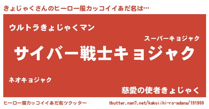 | 意味不明あだ名 | 『自称きょじゃく』『ペロリンきょじゃく』 |