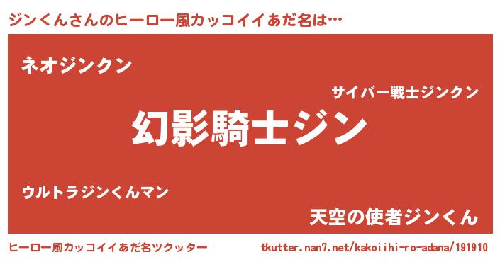 | 男性向けラノベタイトル風あだ名 | 『ジンくんの嫁は女の子じゃないと思った?』 |