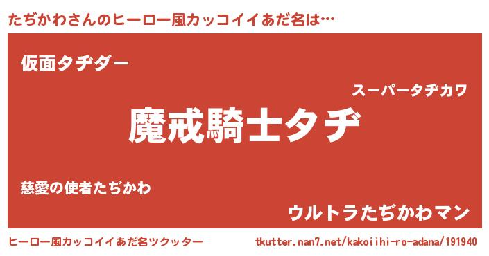 | ポケモン風あだ名 | 『タヂゴンZ』『ヒタヂカワ』 |