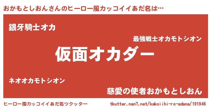 | 男性向けラノベタイトル風あだ名 | 『魔弾の王とおかもとしおん』 |