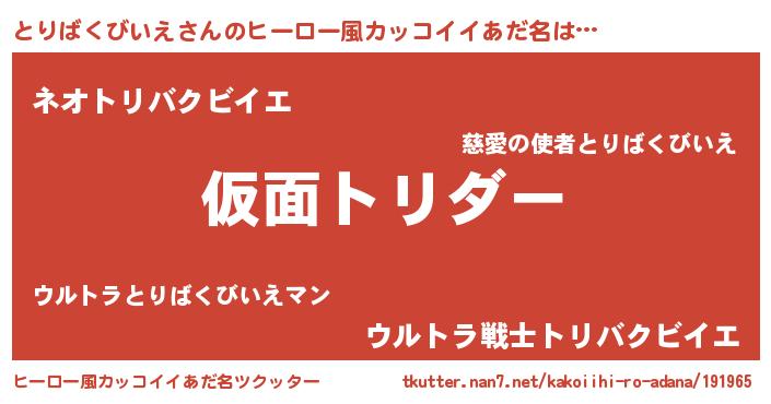 | 男性向けラノベタイトル風あだ名 | 『魔弾の王ととりばくびいえ』 |