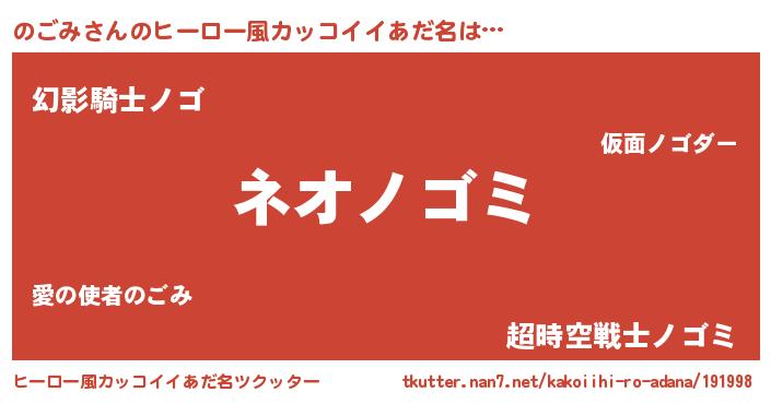 | 男性向けラノベタイトル風あだ名 | 『ノゴミスレイヤー』 |