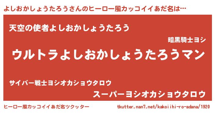 | 欧米人風あだ名 | 『よしおかしょうたろうクリステル』 |