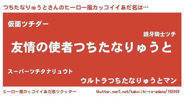 | 男性向けラノベタイトル風あだ名 | 『おまえをオタクにしてやるから、俺をつちたなりゅうとにしてくれ! 』 |