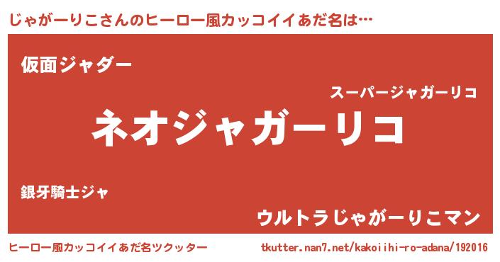 | 男性向けラノベタイトル風あだ名 | 『じゃがーりこという概念が存在しない退屈な世界 』 |