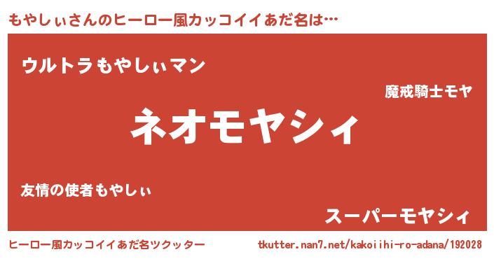 | 男性向けラノベタイトル風あだ名 | 『もやしぃという概念が存在しない退屈な世界 』 |