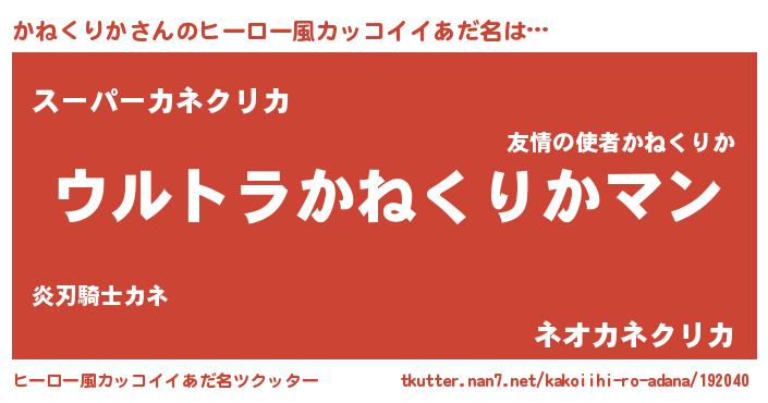 | 伝説のあだ名 | 『秘められし忍者かねくりか』 |