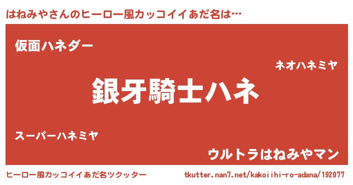| 意味不明あだ名 | 『とにかく怪しいはねみや』 |
