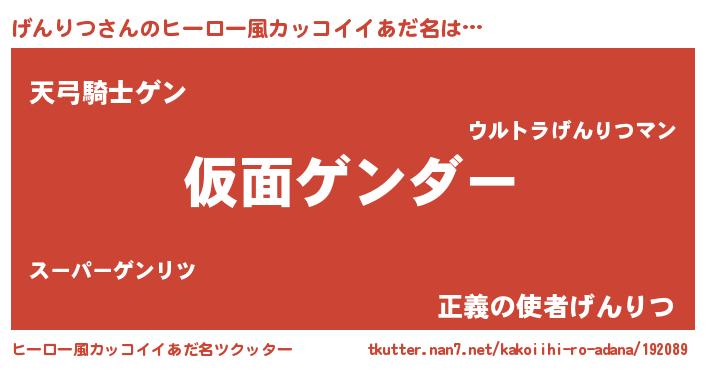 | 男性向けラノベタイトル風あだ名 | 『魔弾の王とげんりつ』『げんりつの憂鬱』 |