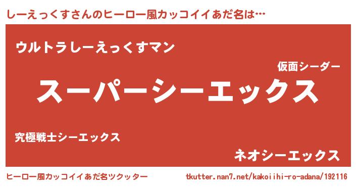 | 男性向けラノベタイトル風あだ名 | 『しーえっくす~年齢イコール彼女いない歴の魔法使い~』 |