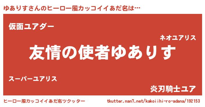 | ヘコむあだ名 | 『ゆあを』『ゆありす(震え声)』 |